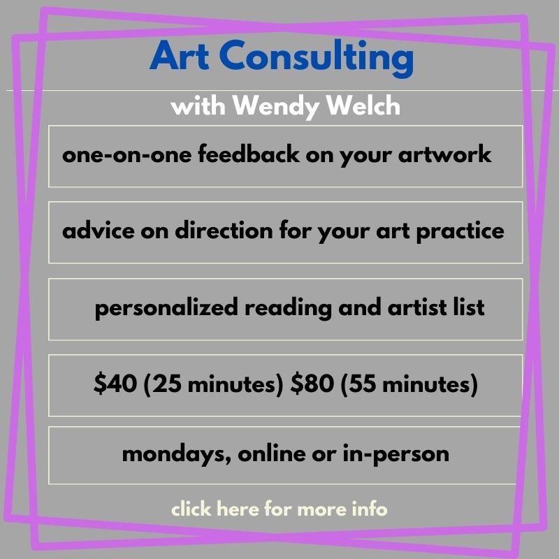 Book time with Wendy Welch to get feedback and advice on your work as well as suggestions for readings and artists to investigate to advance your art practice.